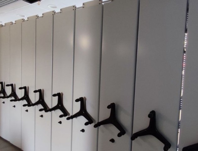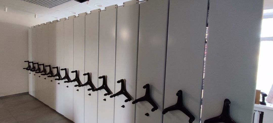 Из-за значительной высоты стеллажей – 2040 мм и при малой ширине секций были установлены специальные антиопрокидыватели, обеспечивающие устойчивость и безопасность персонала при выдвижении секций.
